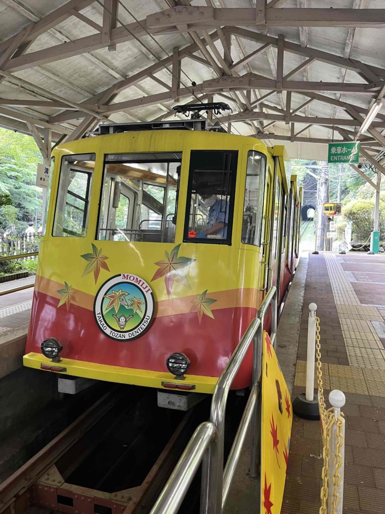 高尾山の魅力のひとつが、なんといっても日本一の急こう配を誇るケーブルカー。