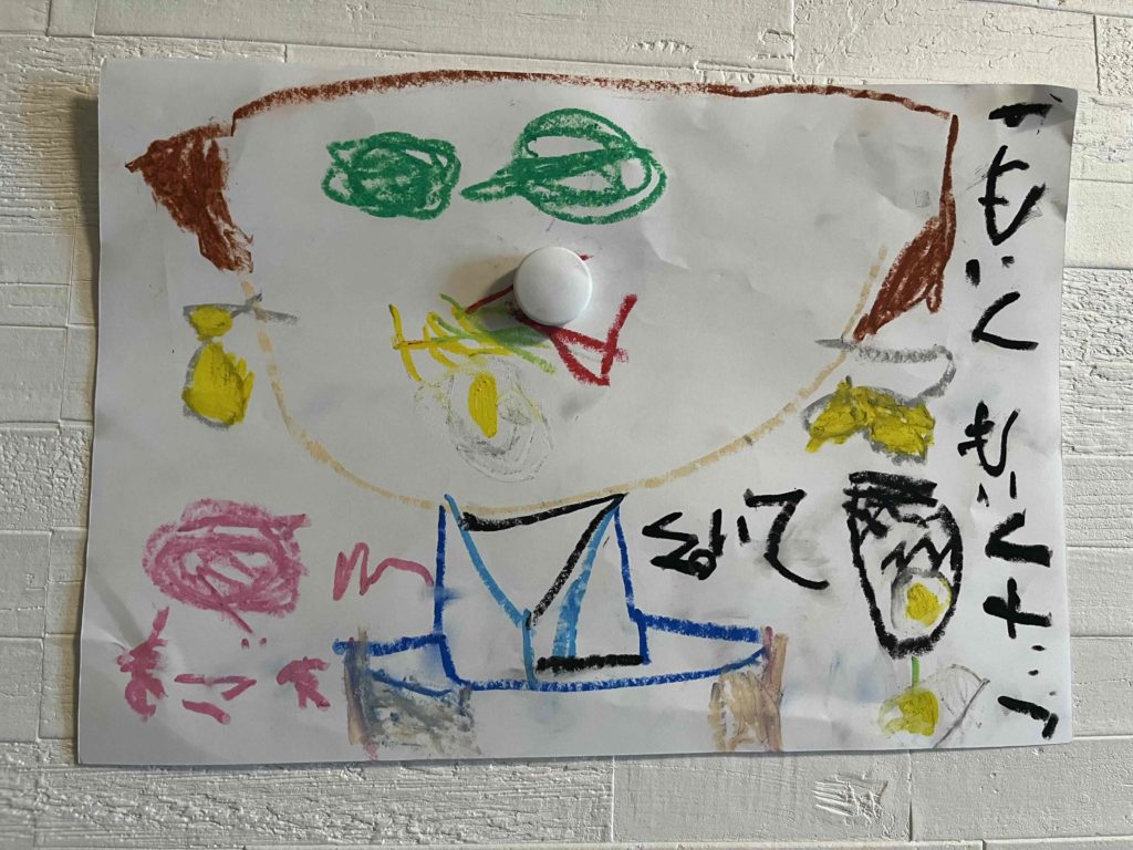4歳の娘の絵。ゴッホの影響を受けて?家に帰ったら絵を描きたい!と独創的な絵を描いていました。